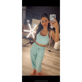 Reena Sky light blue workout top and pants