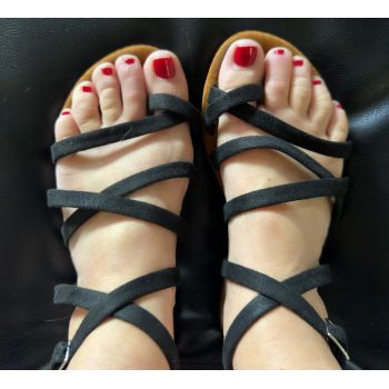 MICHELLE BAENA PLAYBOY MODEL MY PERSONALLY WORN BLACK SANDALS SIZE 5.5 SIGNED WITH SIGNED PHOTOS