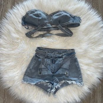 JADA STEVENS worn/used DENIM TOP & SHORTS SET