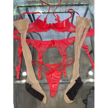 Charlotte Stokely’s Luxury Red and Latex Lingerie set + Thigh Highs