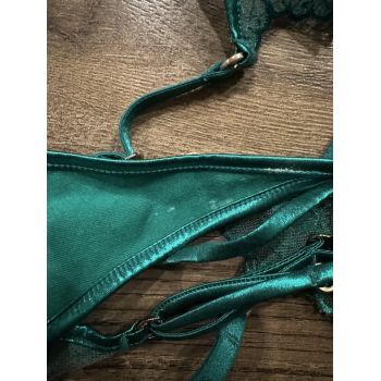 Worn green panty with a small stain