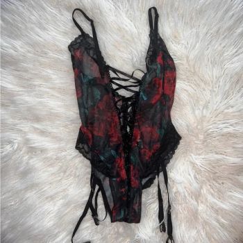 Black Floral Corset with trim worn in New York Post Page Six with Jenna Jameson