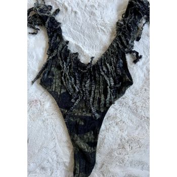 Sofie’s worn Colleen Kelly fringe one piece camo suit