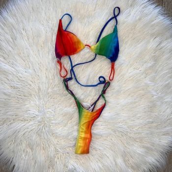 JADA STEVENS worn/used RAINBOW ONE PIECE SWIMSUIT
