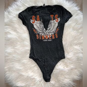 JADA STEVENS worn/used SAINTS & SINNERS DISTRESSED BODYSUIT (EXXXOTICA MIAMI 2023)