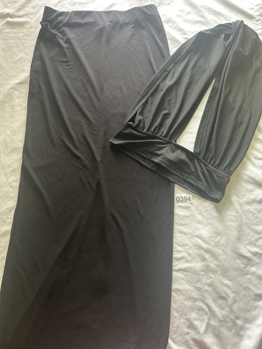 | 394 | Sleek Black Titty Top and Skirt |