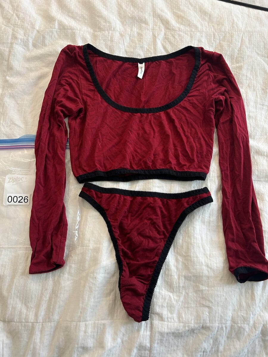 SOLD 26 - Red Long Sleeved Pajama Top + Matching Thong