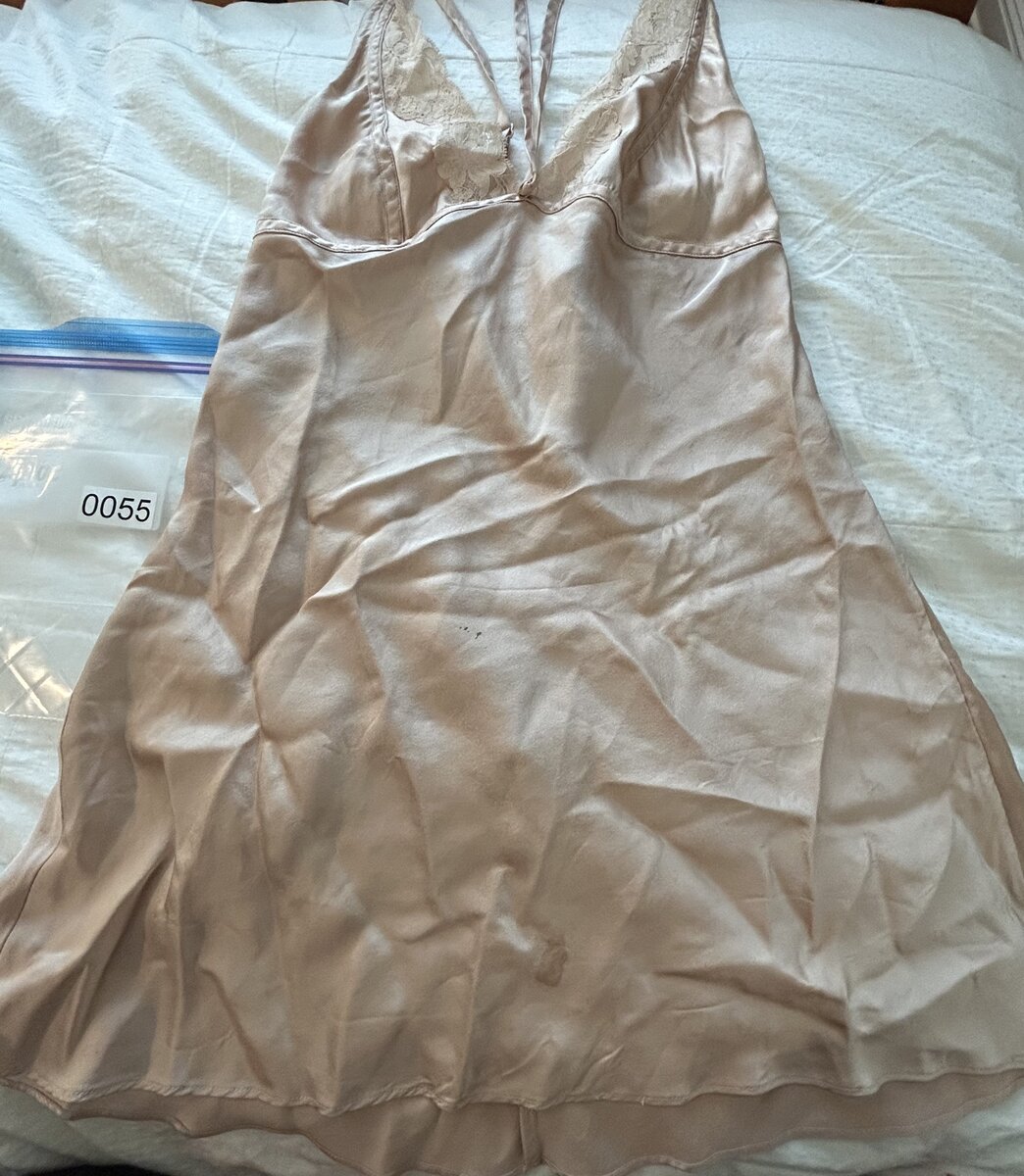 55 - Light Beige Colored Silky Slip with Cum Stain