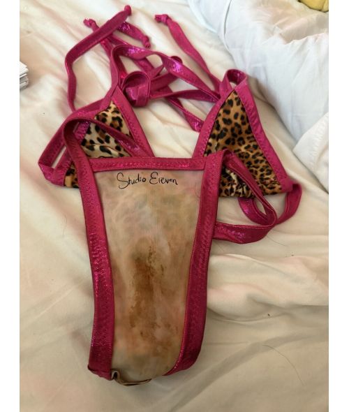 This listing is for her stained, hot pink cheetah print bikini set worn while dancing and for content (seen pictured)
