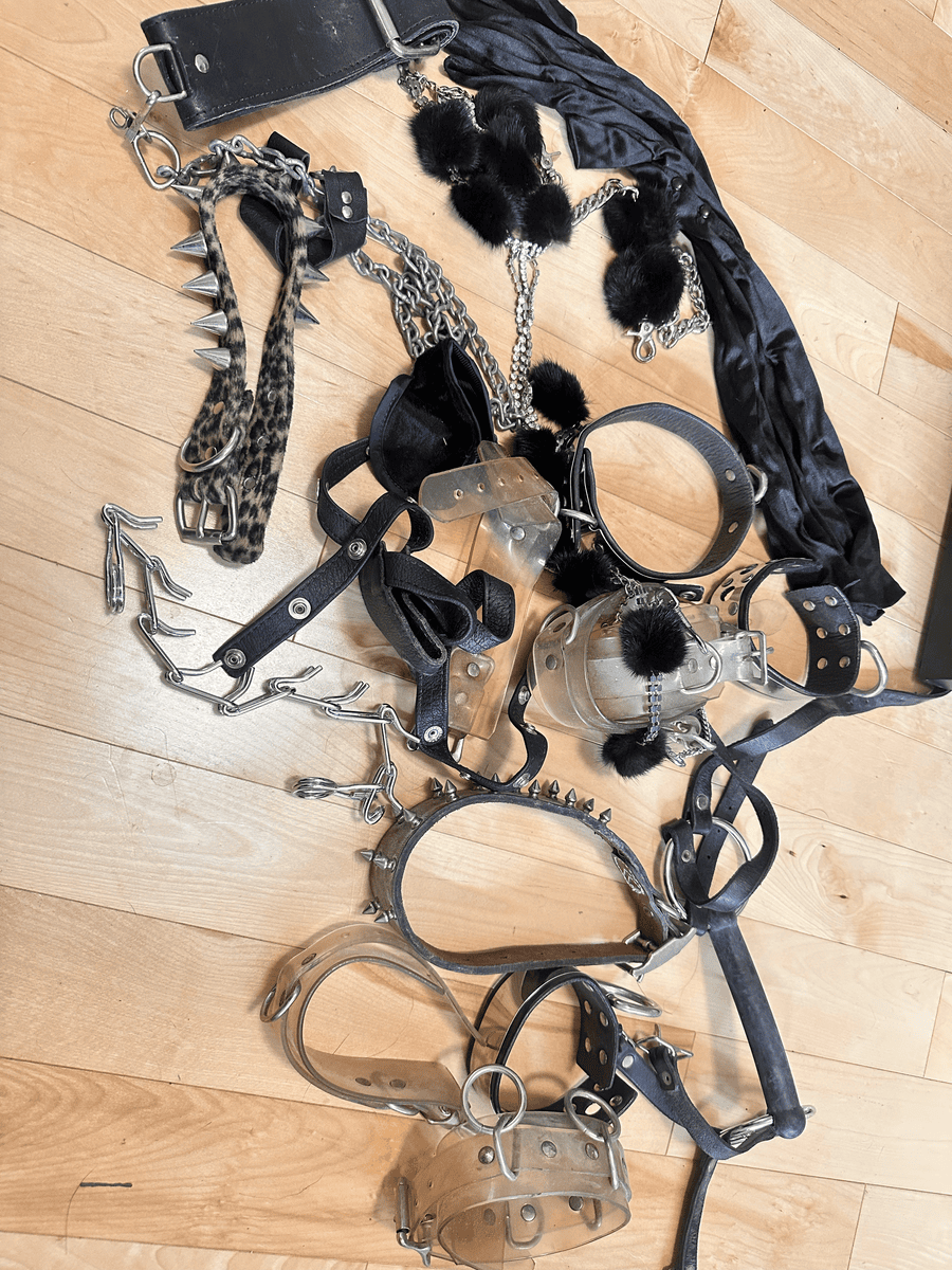 Collars, chokers, leashes, and more. Must have for those kink sessions.