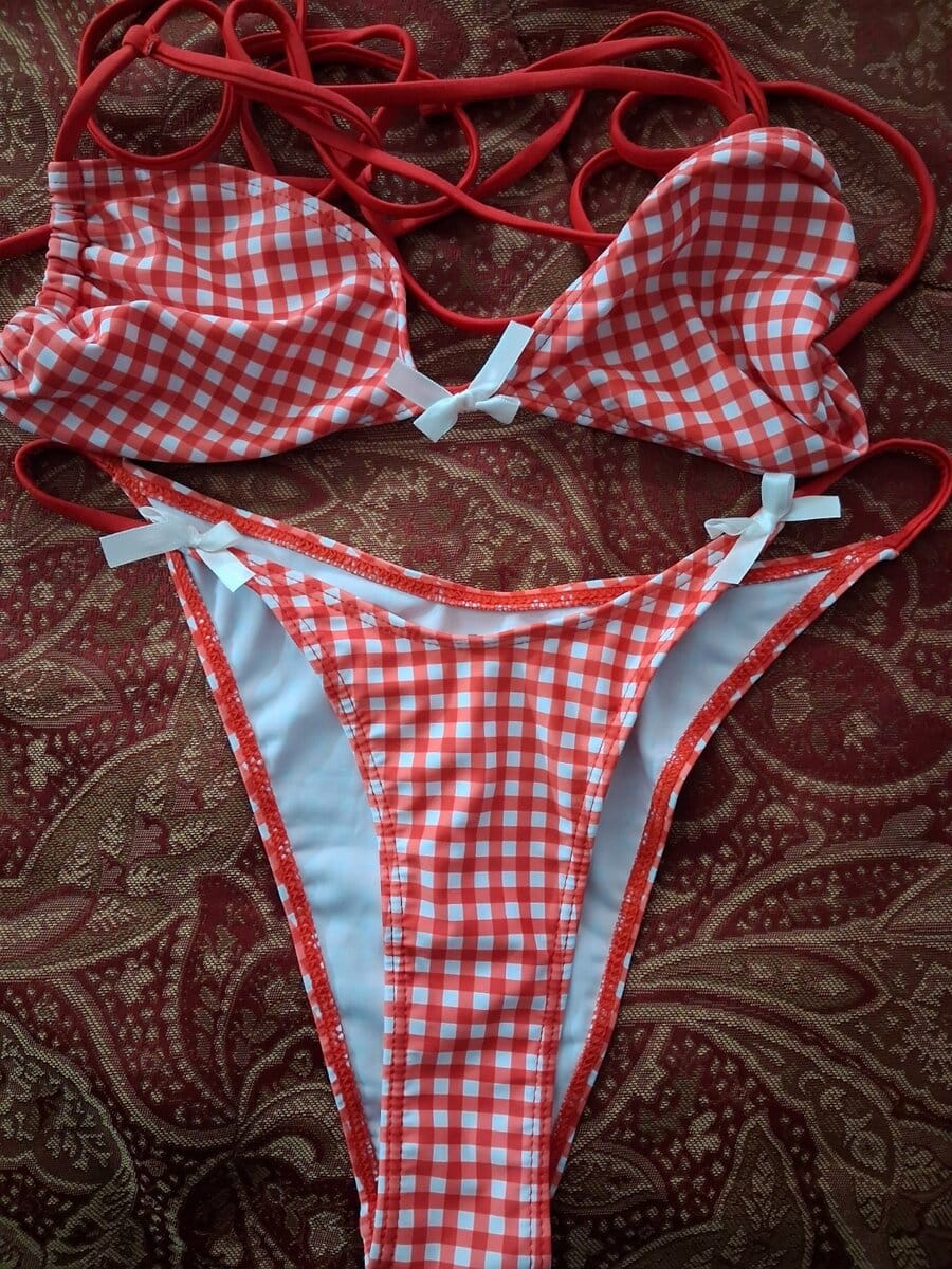 - the RED GINGHAM BIKINI worn/used by KRYSTAL HARPER. This item has been sealed in a ziplock bag since and still has KRYSTAL's sweet sexy scent!