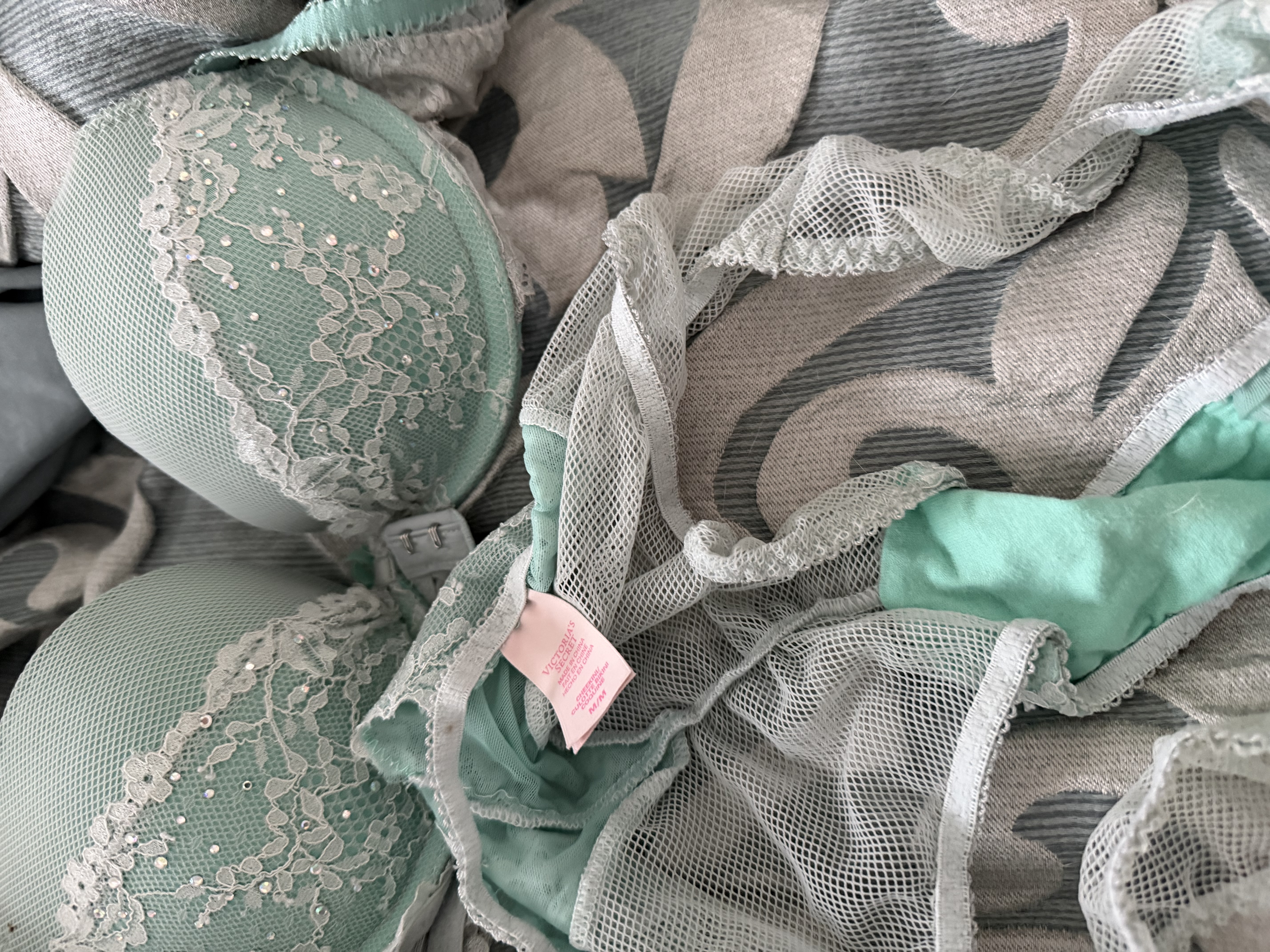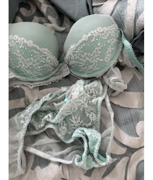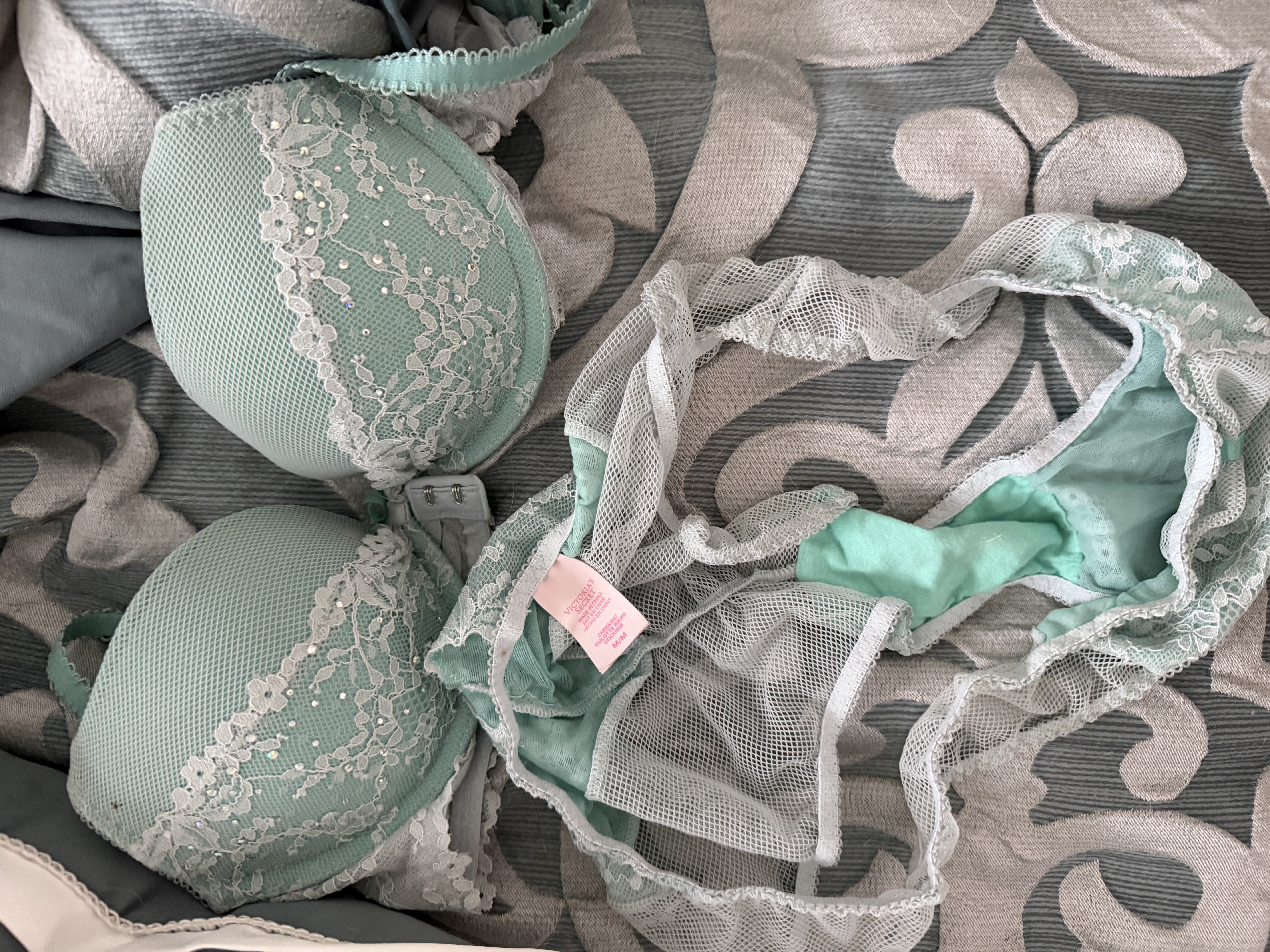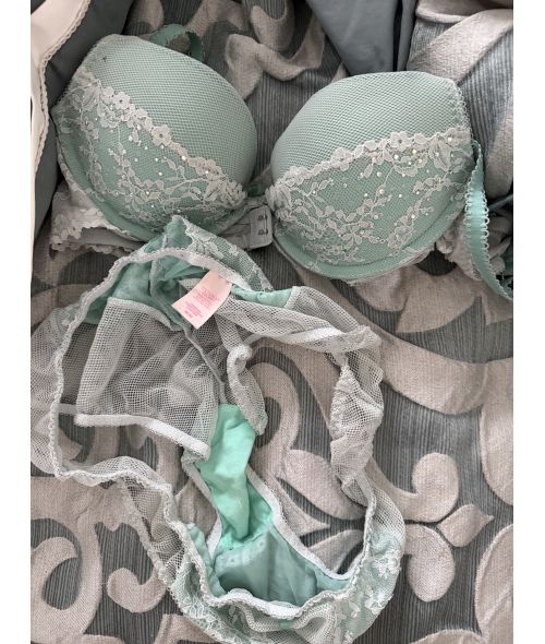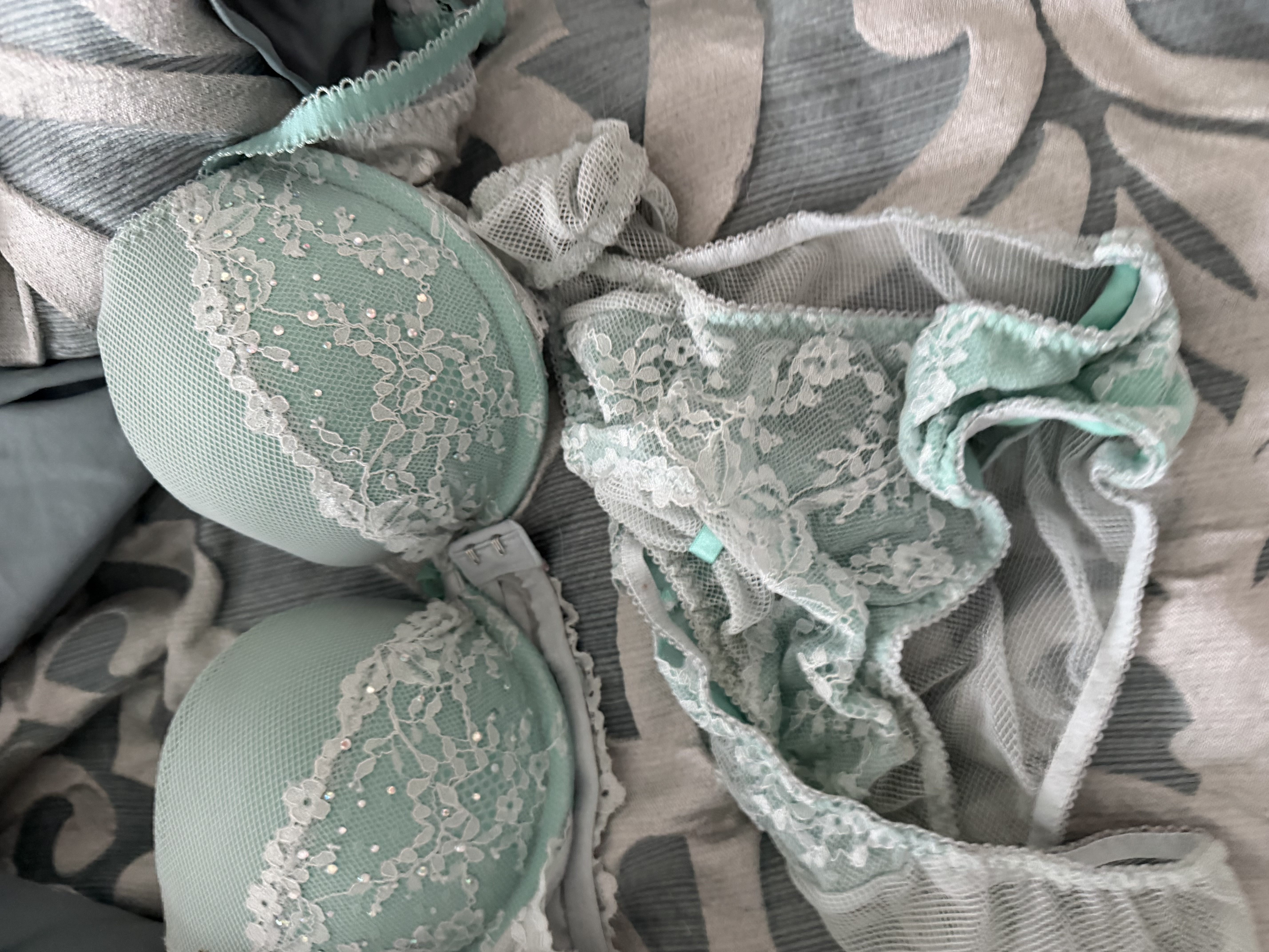 Gorgeous light blue (think soft sky with a hint of teal) Victoria’s Secret set that’s been worn just enough to carry my scent and body heat. This delicate lace and satin piece hugs every curve perfectly — the bra lifts and shapes beautifully, while the matching panty sits low on the hips with that signature cheeky cut that drives attention wild.