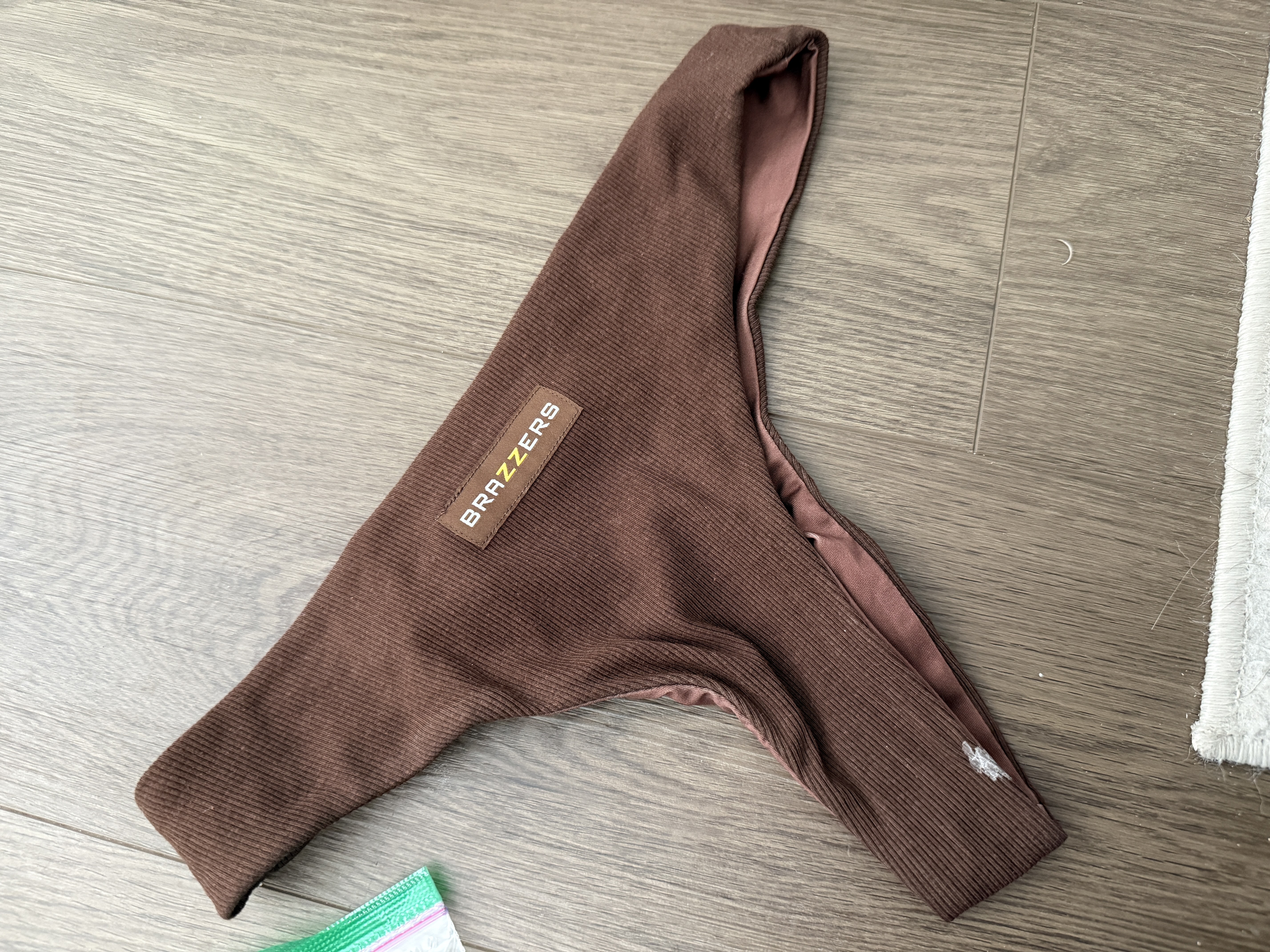 This is Melissa Stratton's worn Brazzer's panty. Soft enough to stroke with, full enough coverage to handle the big load you bust after watching her content.