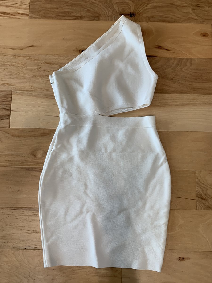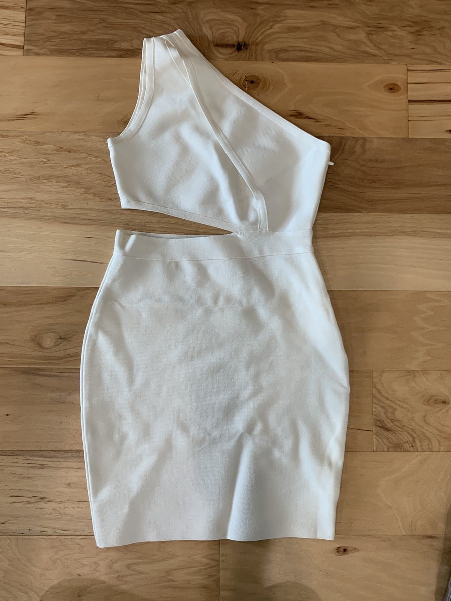 My Sexy White Asymmetric Body-con Dress I wore to The 2018 AVN Awards Show. Autographed 8x10 included