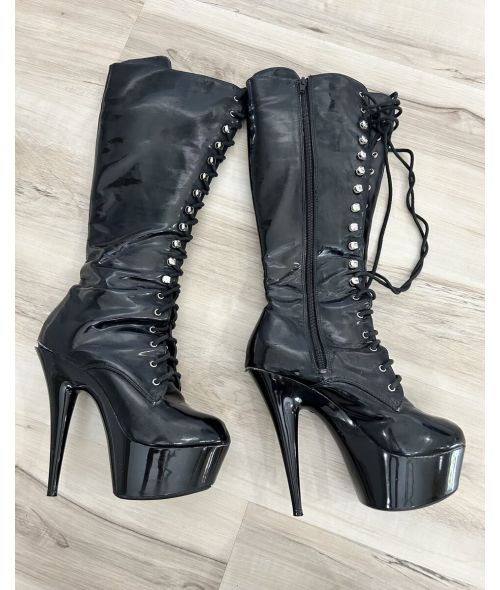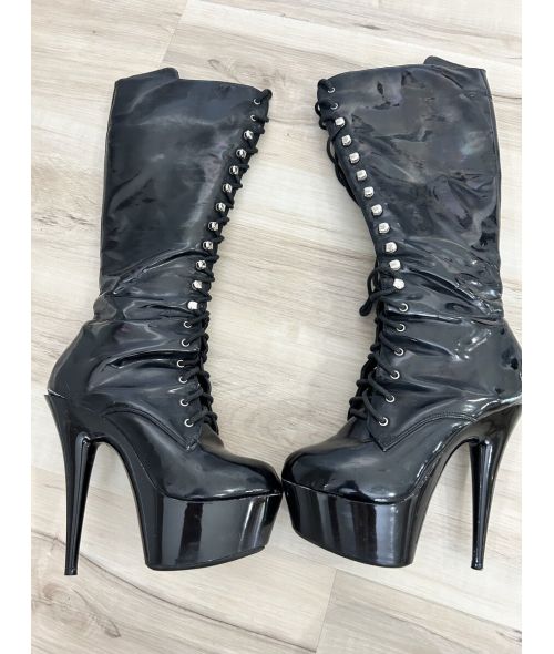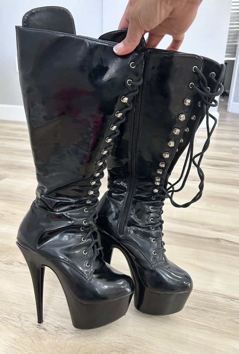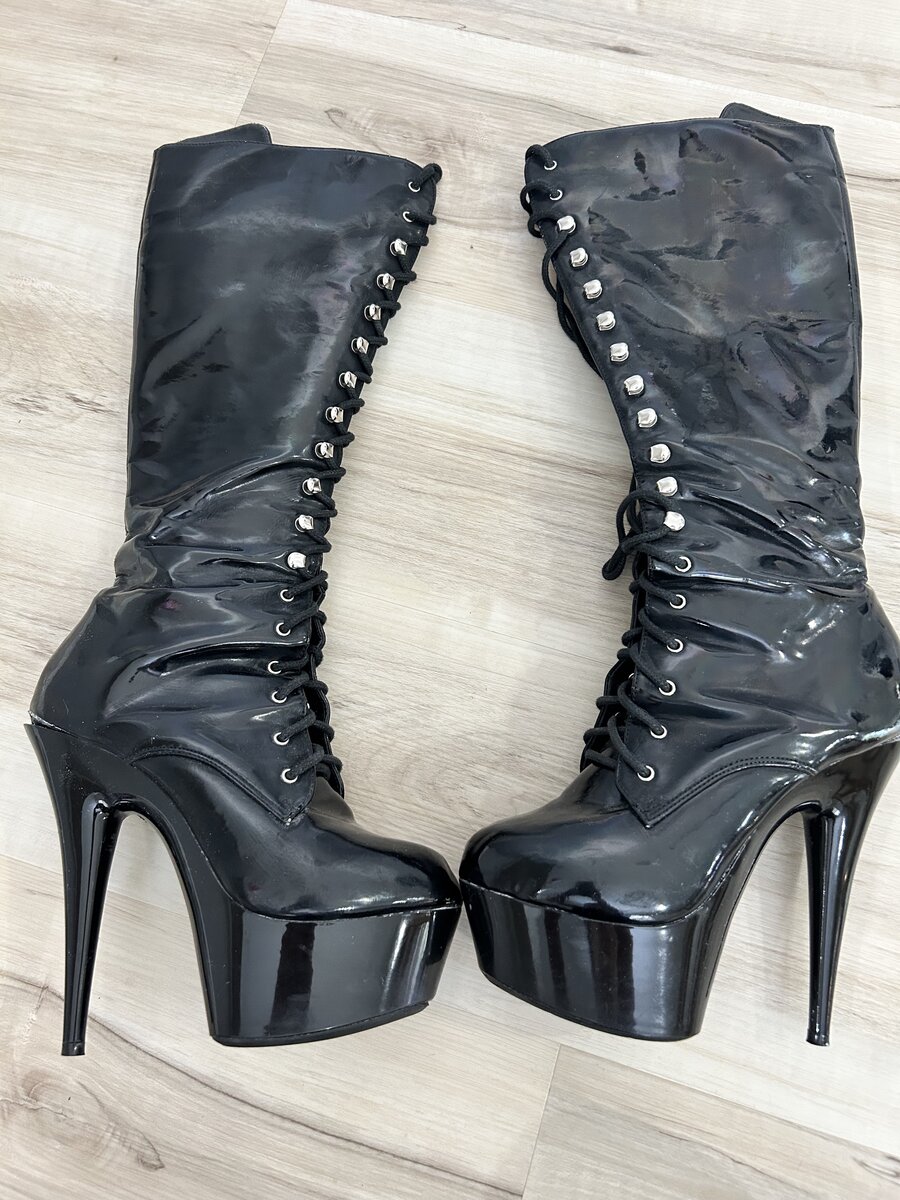 Worn to walk all over subs like you. Black shiny, nearly knee high