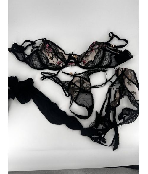 Nicole Doshi's pink Honey Birdette set can now be yours. This comes with the bra, panties, garter, stockings and Honey Birdette Bag. This underwear is super high end (as one might expect from such a top performer, as Nicole). Therefore, a minimum bid of $200 is required for "freshly squirted in panties" with vacuum sealed packaging. This is a rare and coveted piece. It has been worn on several content shoots and also during a shoot with the famous Kazumi and Violet Starr. Legendary underwear worn in a legendary scene.