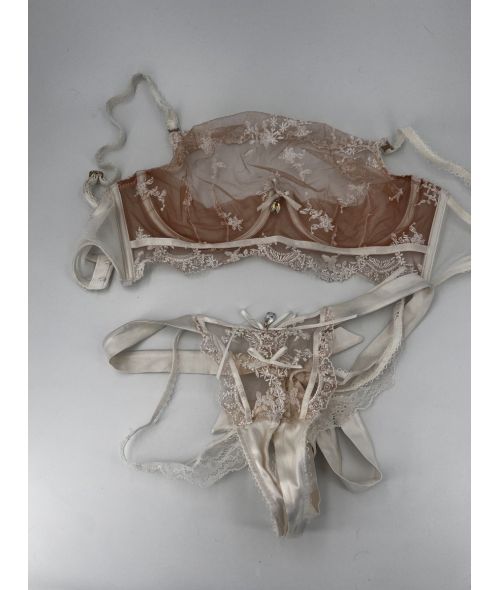 Nicole Doshi's white, lacy Honey Birdette set can now be yours. This comes with the bra and panties and Honey Birdette Bag. This underwear is super high end (as one might expect from such a top performer, as Nicole). Therefore, a minimum bid of $200 is required for "freshly squirted in panties" with vacuum sealed packaging. This is a rare and coveted piece.