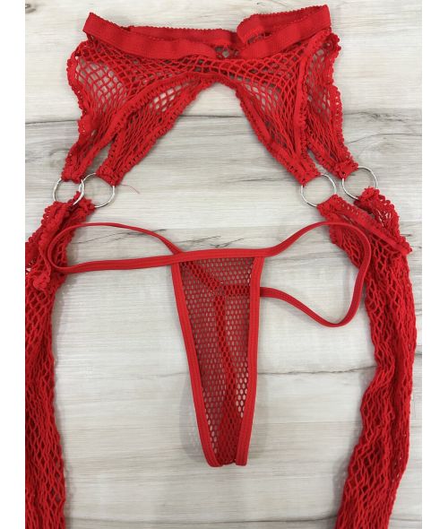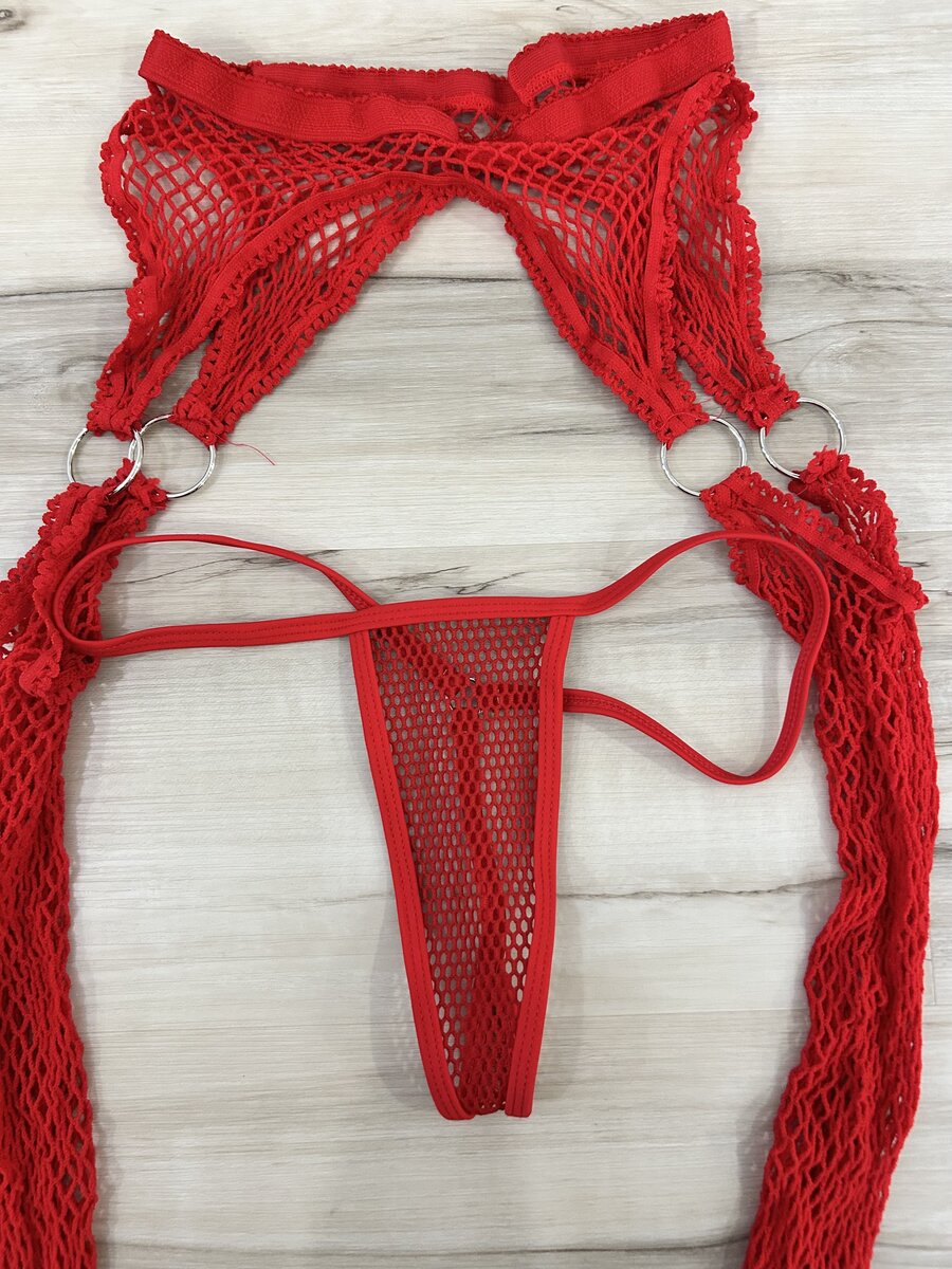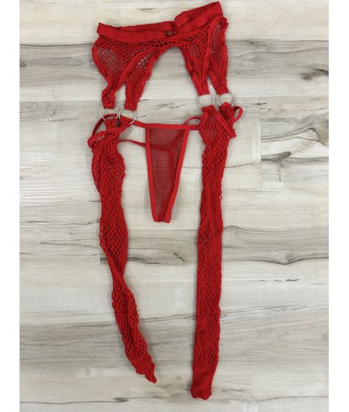 Oft worn Red Fishnet Pantie and Pantyhose set most notably in Brenna Mckenna 3way from Lewood Raw Home Video 2