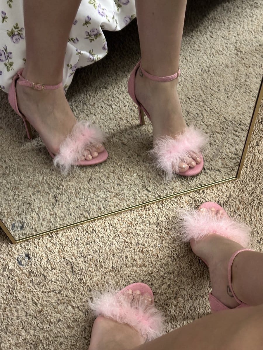 Cute and sassy! My pink heels are one of my faves for girls nights in LA and Vegas.Cute and comfy with a fun little fluffy stuff by the toes