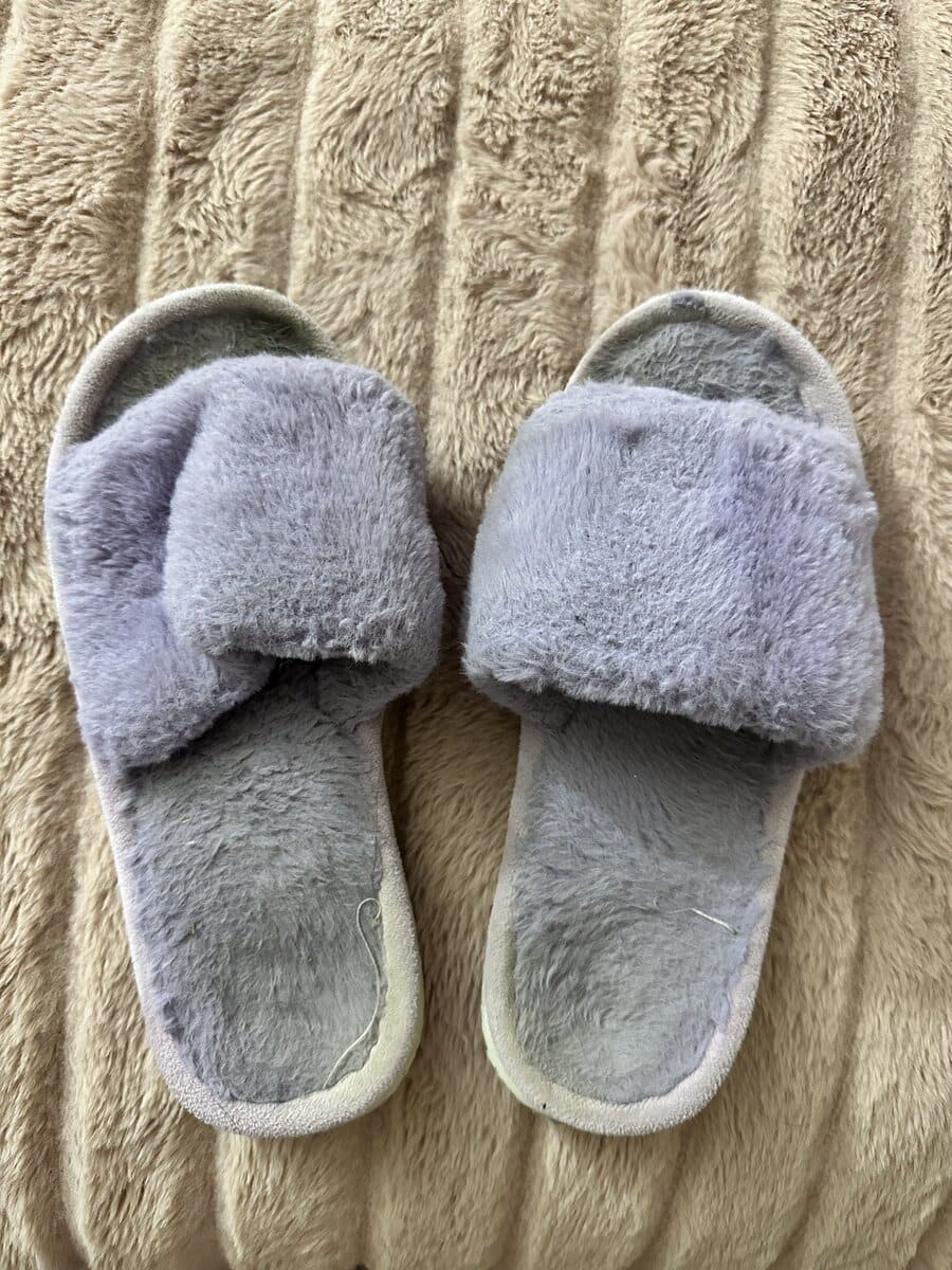 These are my favorites to wear around model houses or on sets when I dont want to walk barefoot on the dirty floors. But now these fuzzy slippers are now too dirty