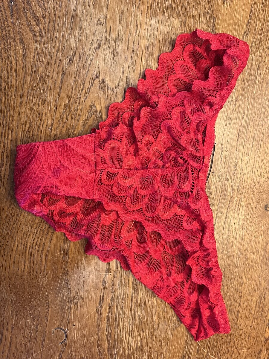 Sexy lace red thongs I wore for the first edition of Faithfully Unfaithful! Wore them for a hot multi spicy scene! Signed DVD included!