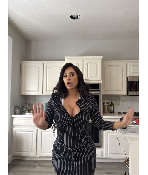 my hot black and white pinstripe suit, plus sexy lacy black Fenty bra and panty!