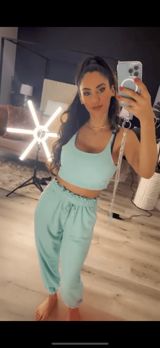 light blue shirt and pants that I work out in! will send right after my last workout in them