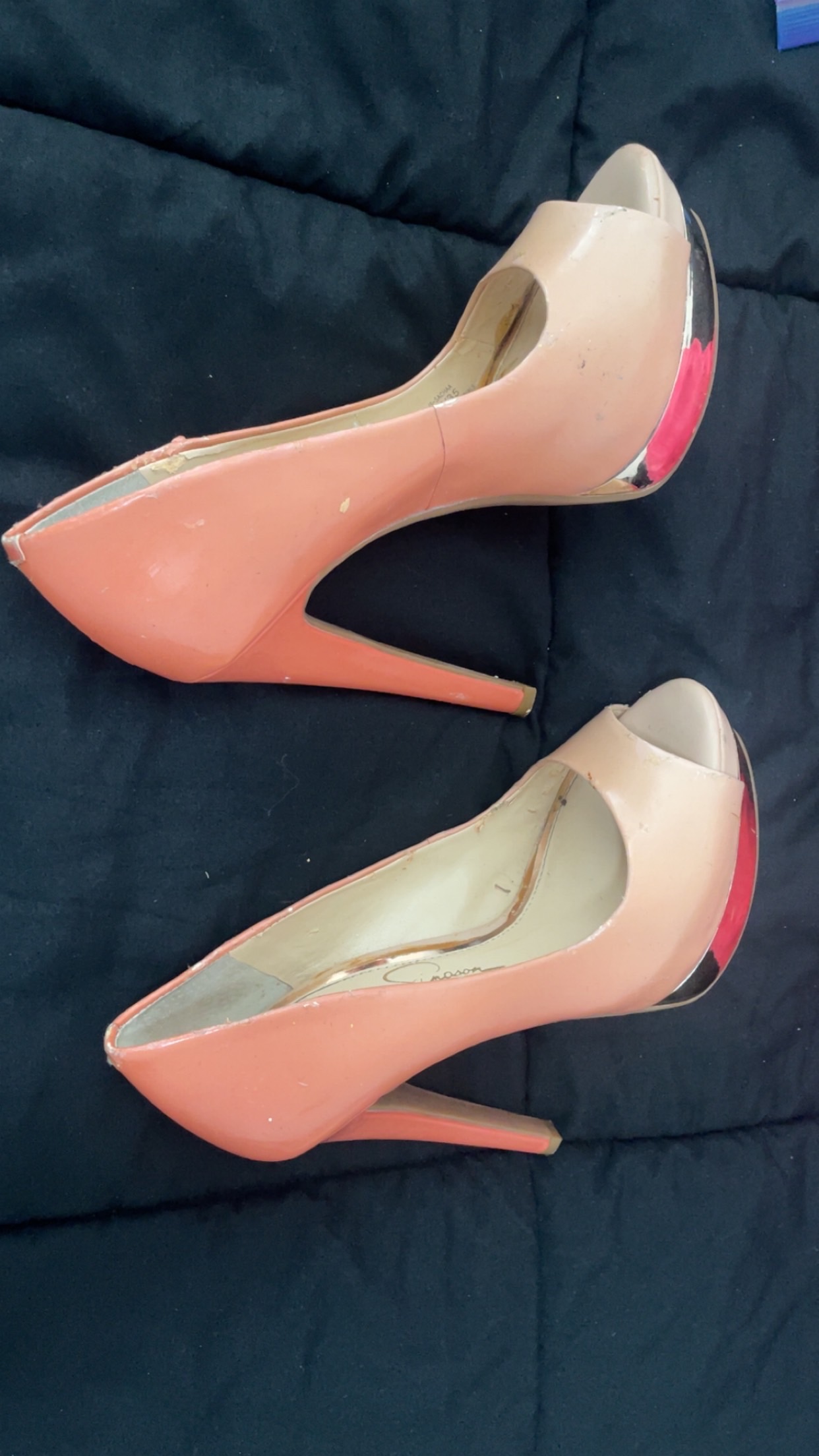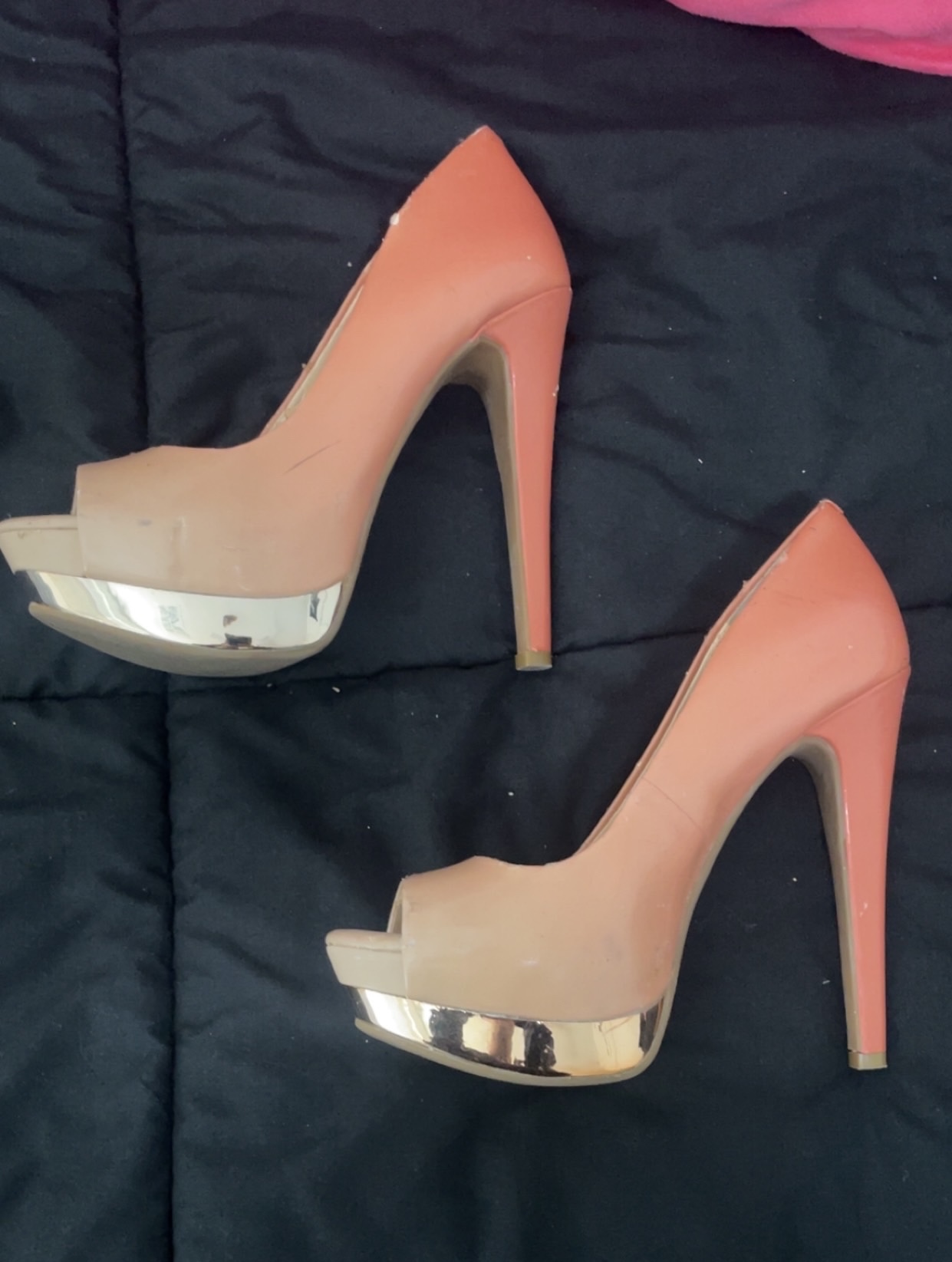 This listing is for Roxie Rae's worn, size 5 (US), peach, platform style, peep toe, high heel pumps worn in her personal life and in clips on www.iwantroxie.com - Heels are bagged and sealed after worn and bag is signed by Roxie. Buyer pays shipping. Happy Shopping! xoxo