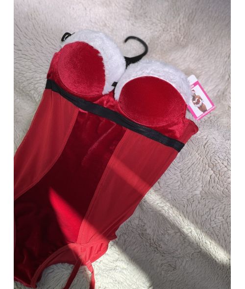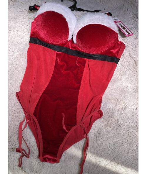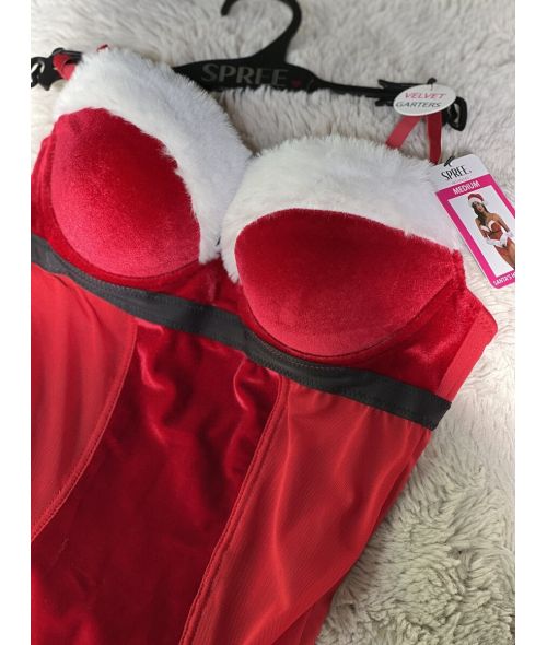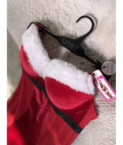 The Santa's Naughty Helper Lingerie Red Velvet Faux Fur Trim Garter by Spree Girl is a brand new with tags garter belt designed for women in size M. This luxurious garter features red velvet material with faux fur trim accents, adding a touch of elegance and warmth to your lingerie collection. Hand wash only to keep this one-piece stylish accessory looking fresh and fabulous for any occasion.