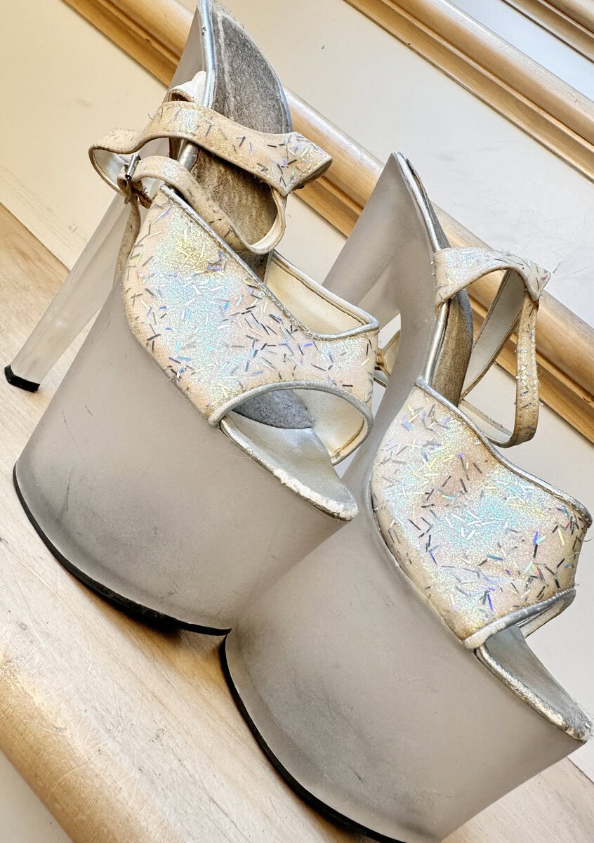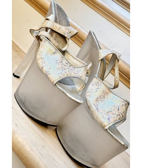 Sexy sky high platforms with clear heels. Worn many times in my movies, shoots and more.