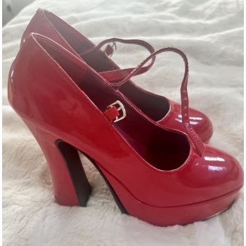 Sofie’s worn red high heeled Pleaser pumps (size 8)