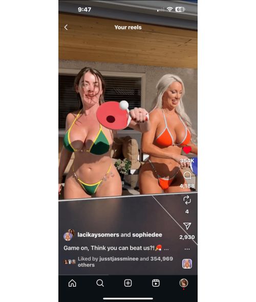 my sexy green with yellow strings bikini that I wore in a super viral Reel playing table tennis can be yours!