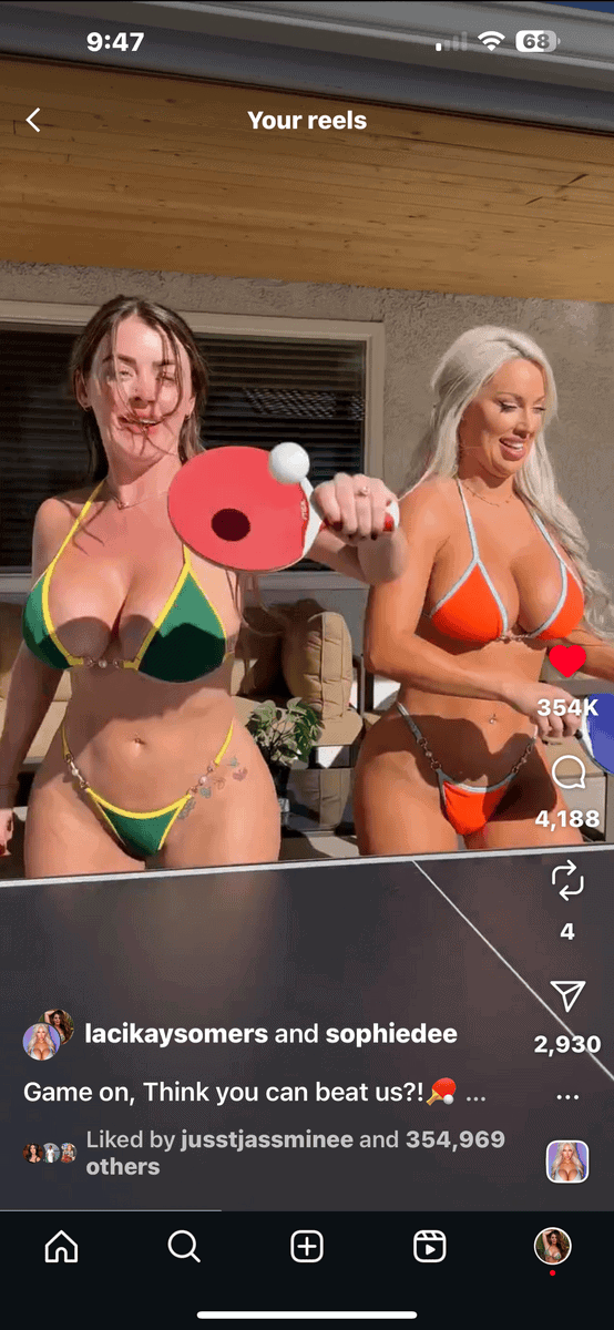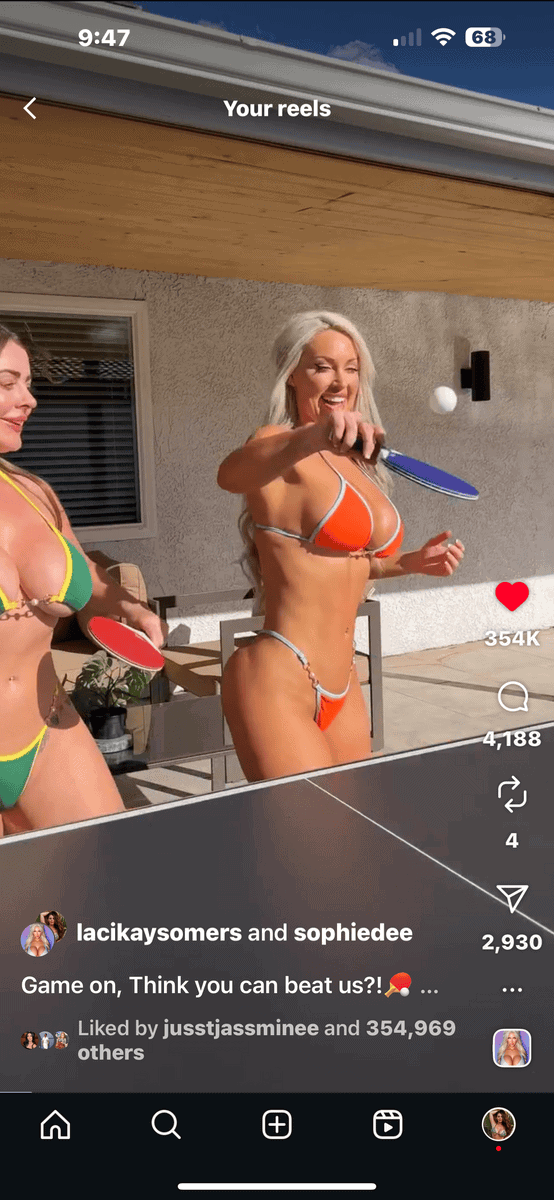 my sexy green with yellow strings bikini that I wore in a super viral Reel playing table tennis can be yours!