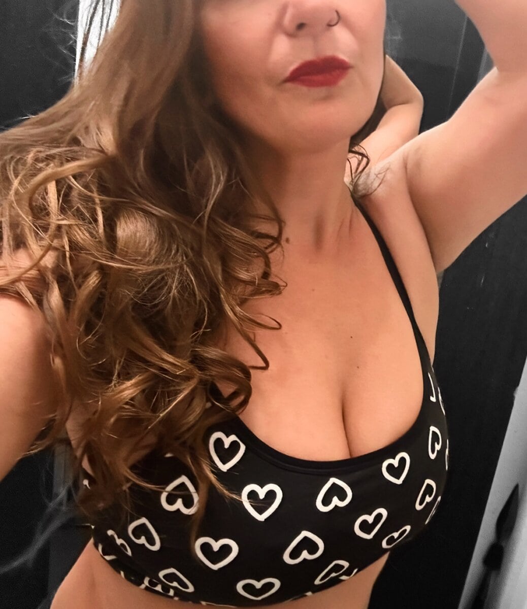 Treat yourself with this black cotton sports bra. Size med/lg. Fits snug to contain my natural DDs. Worn freshly just for you during my yoga class to capture my essence.