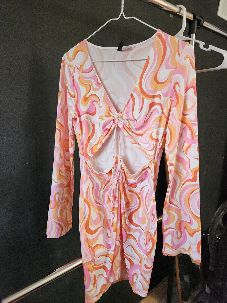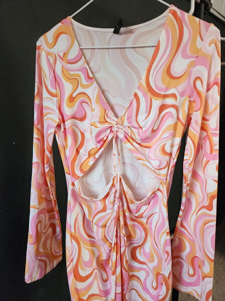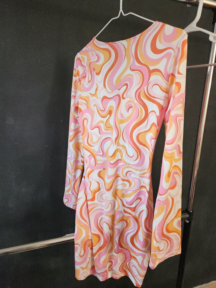 Fun 1960's themed pink and orange dress worn by Lilli while in France