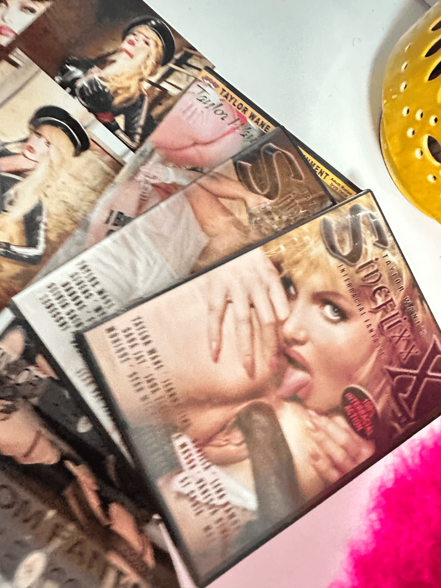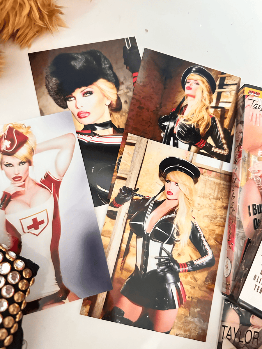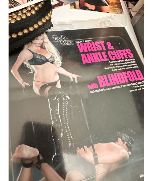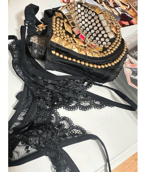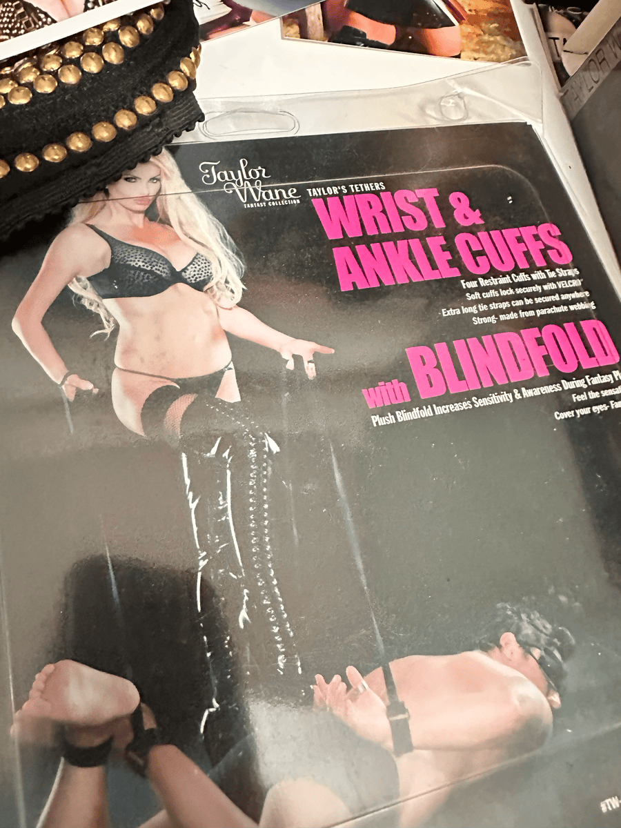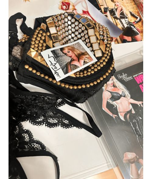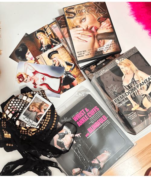 The KINK COLLECTION! A black studded fetish bra with open crotch panties for easy access. As a bonus Im including three kinky DVDS, fem dom fantasy strap on, Wrist and ankle cuff with blindfold, polaroid of me wearing the bra, and 4- 5x7 fetish photos.