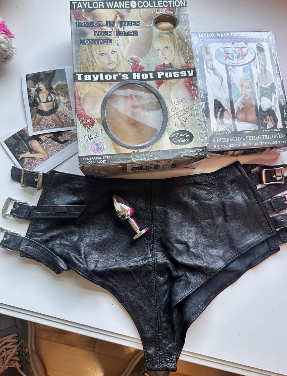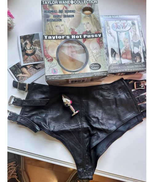 Where's my kinky boys at? Black leather shorts worn in fetish shoots, Butt plug, Taylor's vibrating pussy, Trilogy DVD box set/Virtual sex with Taylor, and 2 signed polaroids.