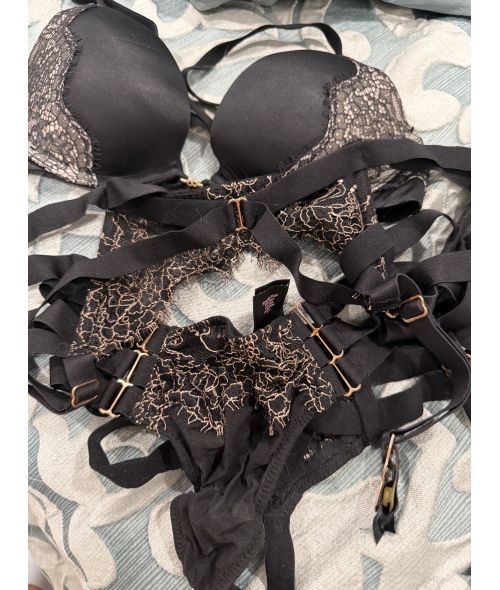 I just slipped out of this filthy-hot Victoria’s Secret black lace set after wearing it all day for you. The push-up bra is pure temptation — delicate black lace that barely holds my tits, now carrying my scent and the warmth of my skin. Those cups are soft and slightly damp from where my nipples got hard thinking about you.