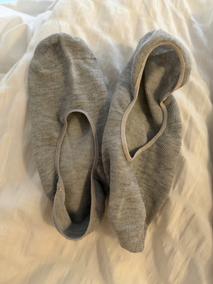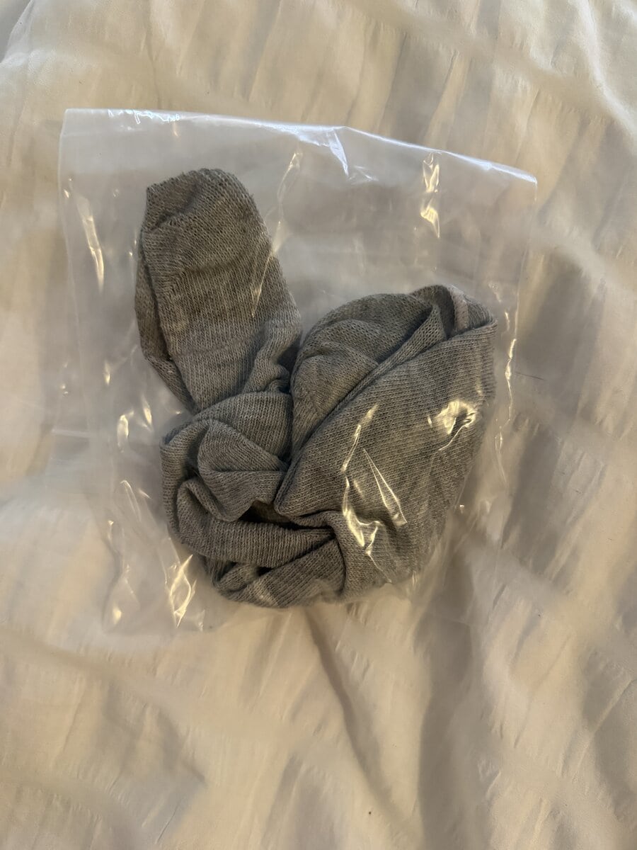 Worn gray sweaty socks! Get to experience my scent and sweat after wearing them for a whole entire day of activities. I had these for a long time and it is time to get rid of them.