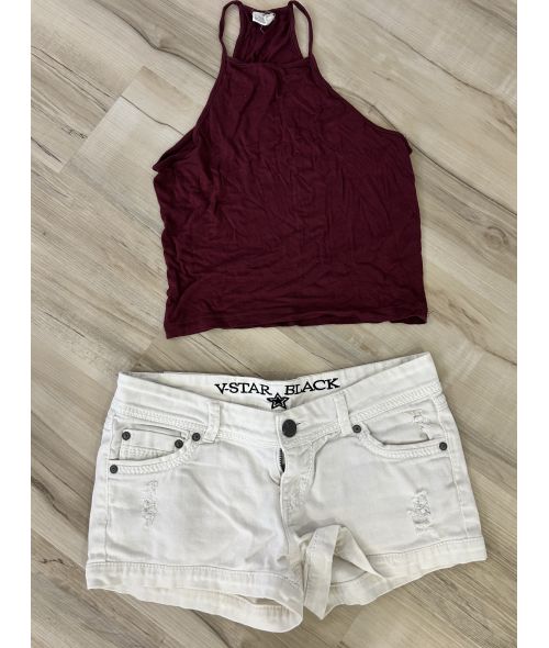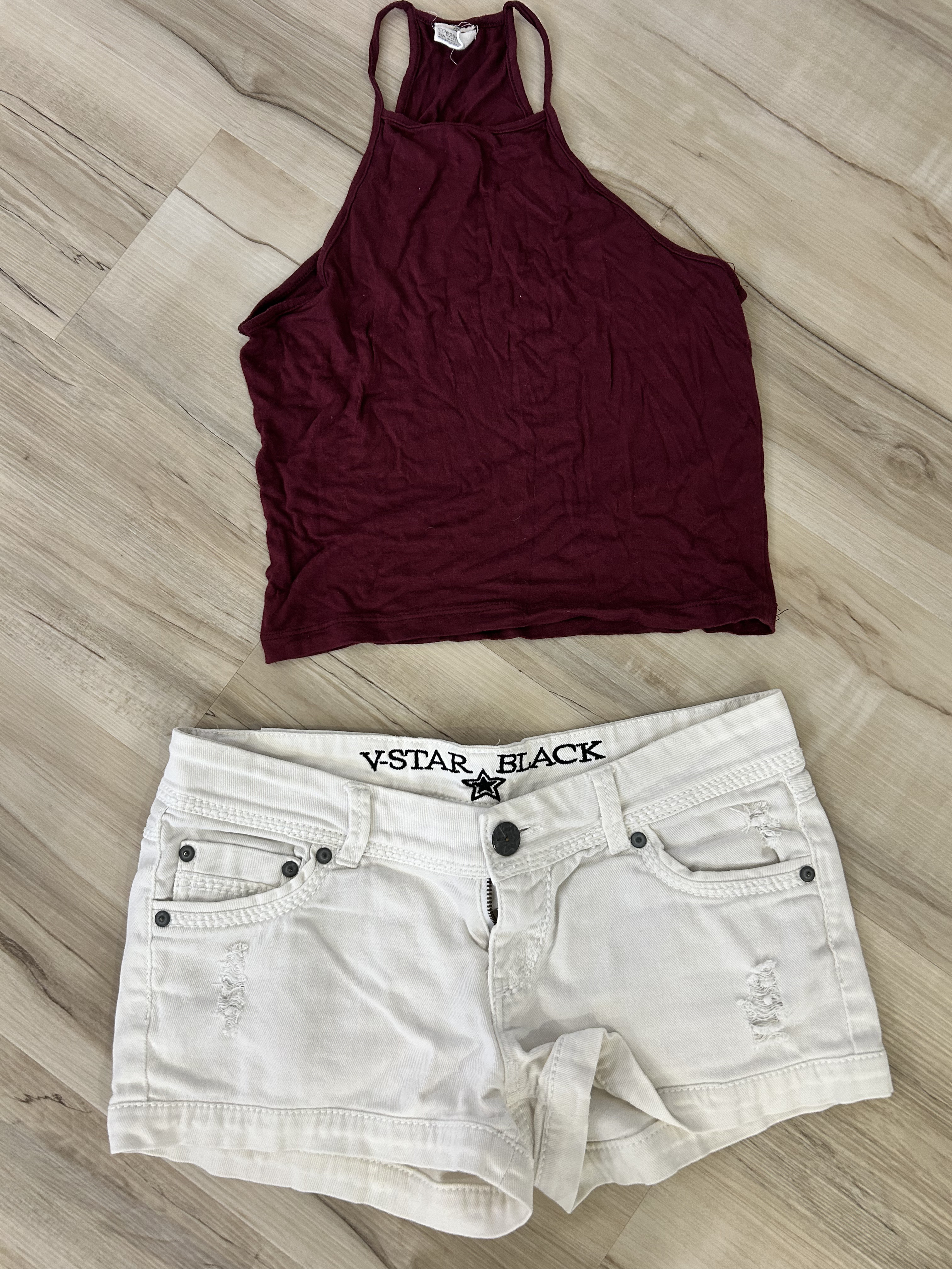 Worn Maroon Halter and White Short set South Beach Weekend Scene. Dredd Fucked me hard in this.